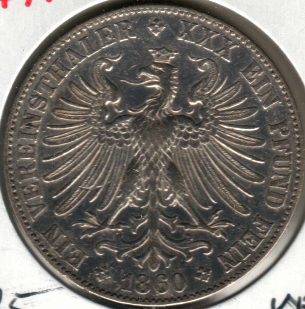 1 Thaler (silver) 1860 360 g47h.jpg (140437 bytes) g47hx.jpg (161403 bytes)   VF 60.00Sold