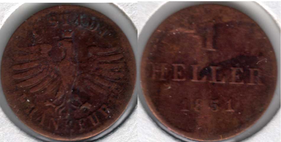 1 Kreuzer 1851 218.2 ger5111t.jpg (66828 bytes) ger5111tx.jpg (61227 bytes)   VF 3.50