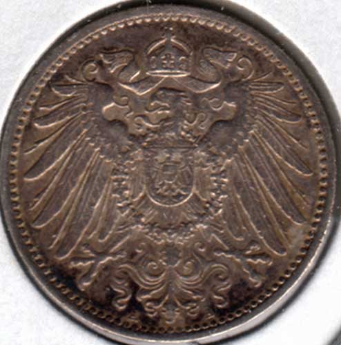 2 Mark (silver) 1908A 522 gz1.jpg (13738 bytes) gz1x.jpg (13984 bytes) Wilhelm II F+ 10.00sold