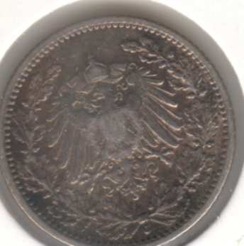 ½ Mark (silver) 1917A 17 ger003.jpg (12276 bytes) ger003x.jpg (17555 bytes)  some lustre   better than photos show AU 8.00