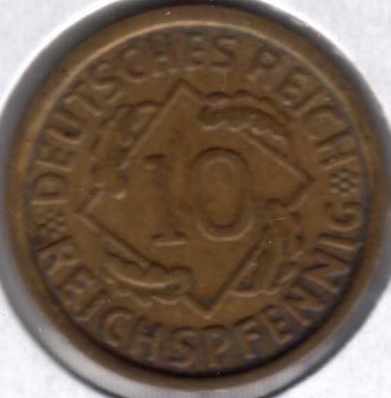 10 Reichspfennig 1930J 40 ger113q.jpg (60479 bytes)   F+ 1.50