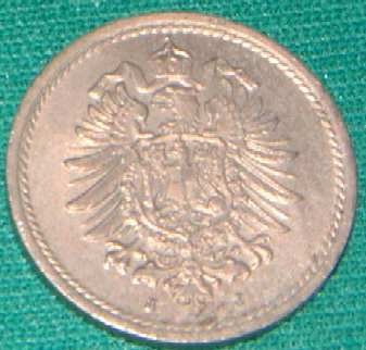 5 Pfennig 1950J 107 ger5pf50.jpg (12269 bytes) ger5pf50x.jpg (7204 bytes) small J     70% lustre Gem UNC 5.00