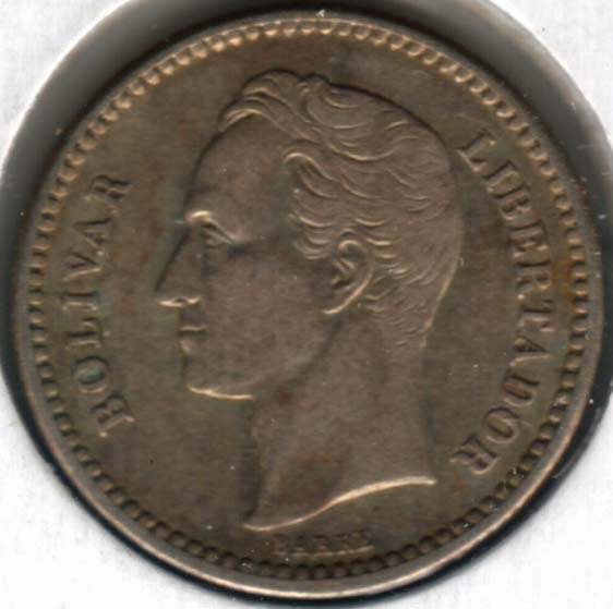 ½ Bolivar (silver) 1929(p) 21 ven5uh.jpg (50336 bytes) ven5uhx.jpg (46378 bytes)   VF 2.50
