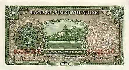 | 5 Yuan | 1949 | S-2457 | Kwangtung Bank | UNC | 3.00 |