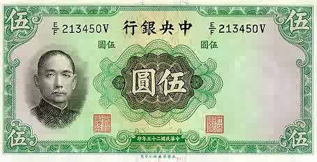 | 5 Yuan | 1936 | 213a | Sign 5 Sun Yat-sen | AU+ | 3.00sold |