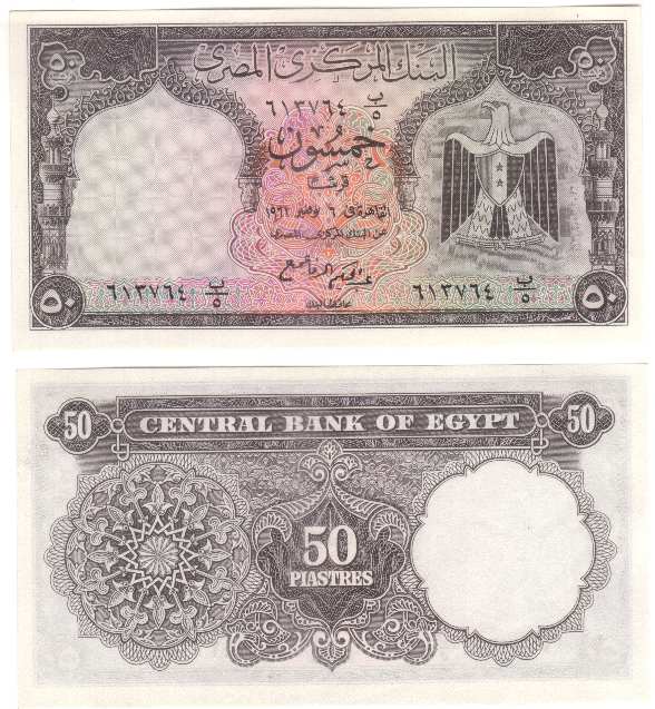 50 Piastres 6.11.1961 36aegyptp36a.jpg (75677 bytes) Sign 11 series 5 UNC 8.00