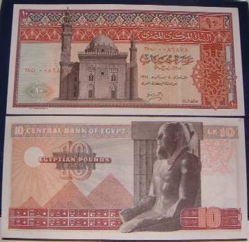 10 Pound 11.7.1999 51  egyptp51.jpg (25575 bytes) sign 19  Al-Rafai mosque & Pharaoh series 185 UNC 4.75