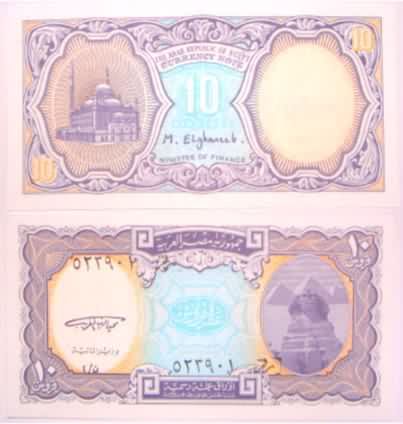 10 Pounds 8.5.1974 46   egyp46.jpg (20129 bytes) Sign 14   very minor ink smudge on back Crisp AU 10.00