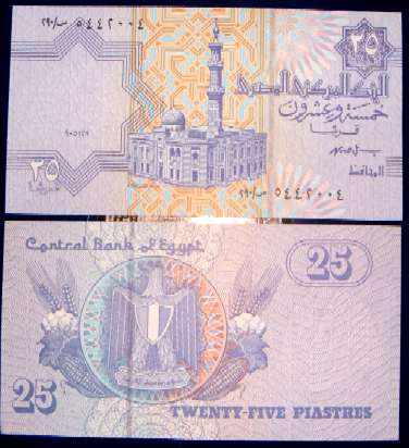 25 Piastres 5.12.1999 57b   egyptp57b99.jpg (26096 bytes) Sign 19  Al-Sayida Aisha Mosque series 290 UNC 0.50